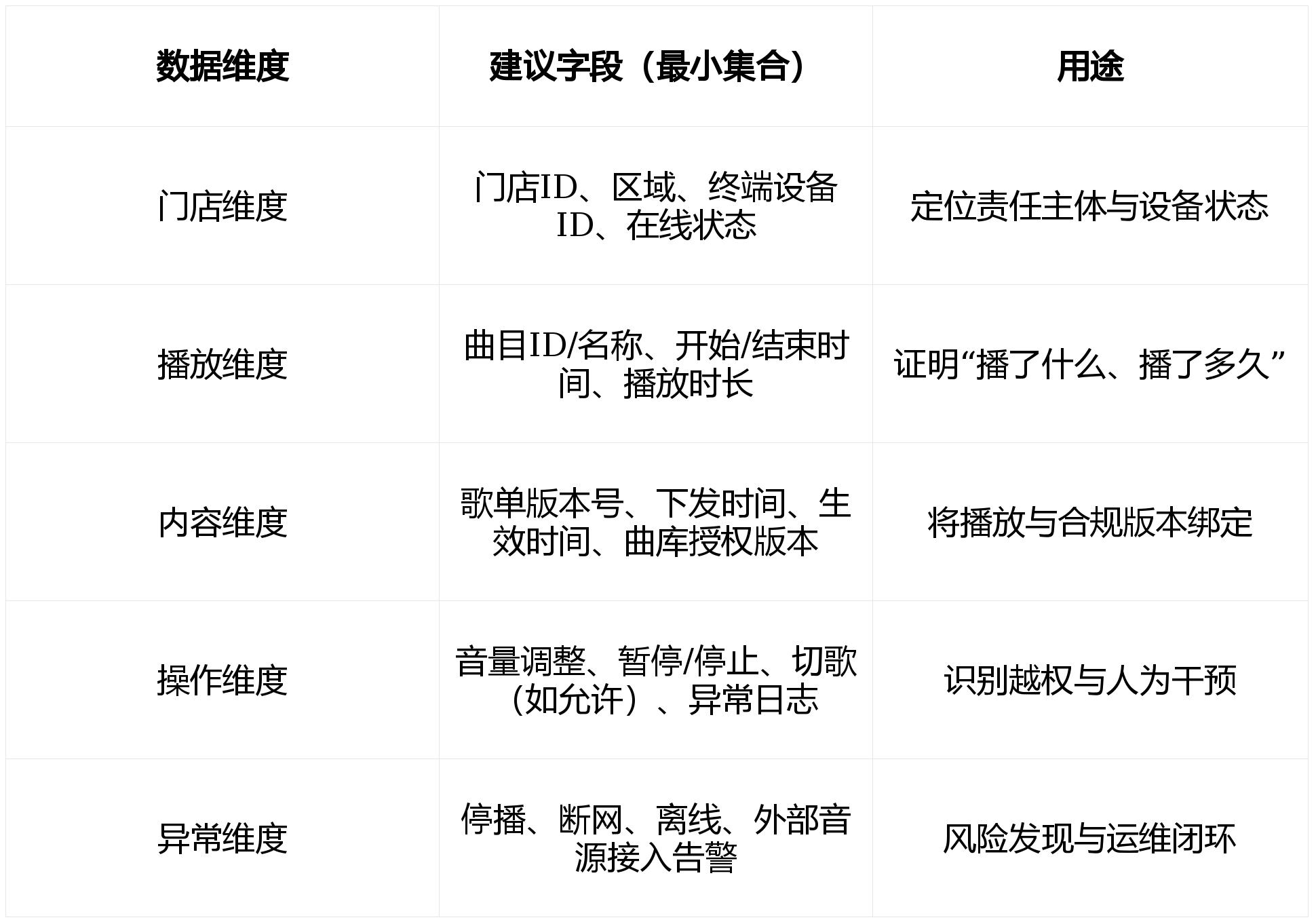 避免门店随便变化。门店复制扩张时更容易快速“做出同款体验”,音乐属于典型“线索”,每个门店都有本人的播放权;合适的音乐能提拔门店20%以上的换座率。投入沉点取环节能力分歧。声音空间设想能够用三个模子落地:情感设想模子、客流节拍模子、空间分区模子。听起来都像是一个品牌,正在叫号时触发压音或短暂静音,· 及时看板:正在线率、播放施行率、内容版天职歧性、非常率、音量合规率等目标可视化。顾客会潜认识的认为:“这里的布景音乐都是规范正版的,· 婚配场景节拍:早/中/晚、高峰/低峰、列队等待等形态下,其方针是:授权同一、范畴清晰、可逃溯、施行可控:· 版本化办理:歌单/曲库有版本号、生效日期、合用范畴、变动记实,缺一不成。3. 制定音乐规范:可播/禁播清单、音量准绳、审核尺度。